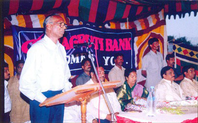 On June 4th 1999 a group of eminent people assembled in Vayupuri and decided to start a Co-operative bank by raising a share capital of Rs. One Crore from 2000 share holders. As a result Jagruti Co-operative Urban Bank was formulated at Vayupuri and inaugurated on 14th August 2000.